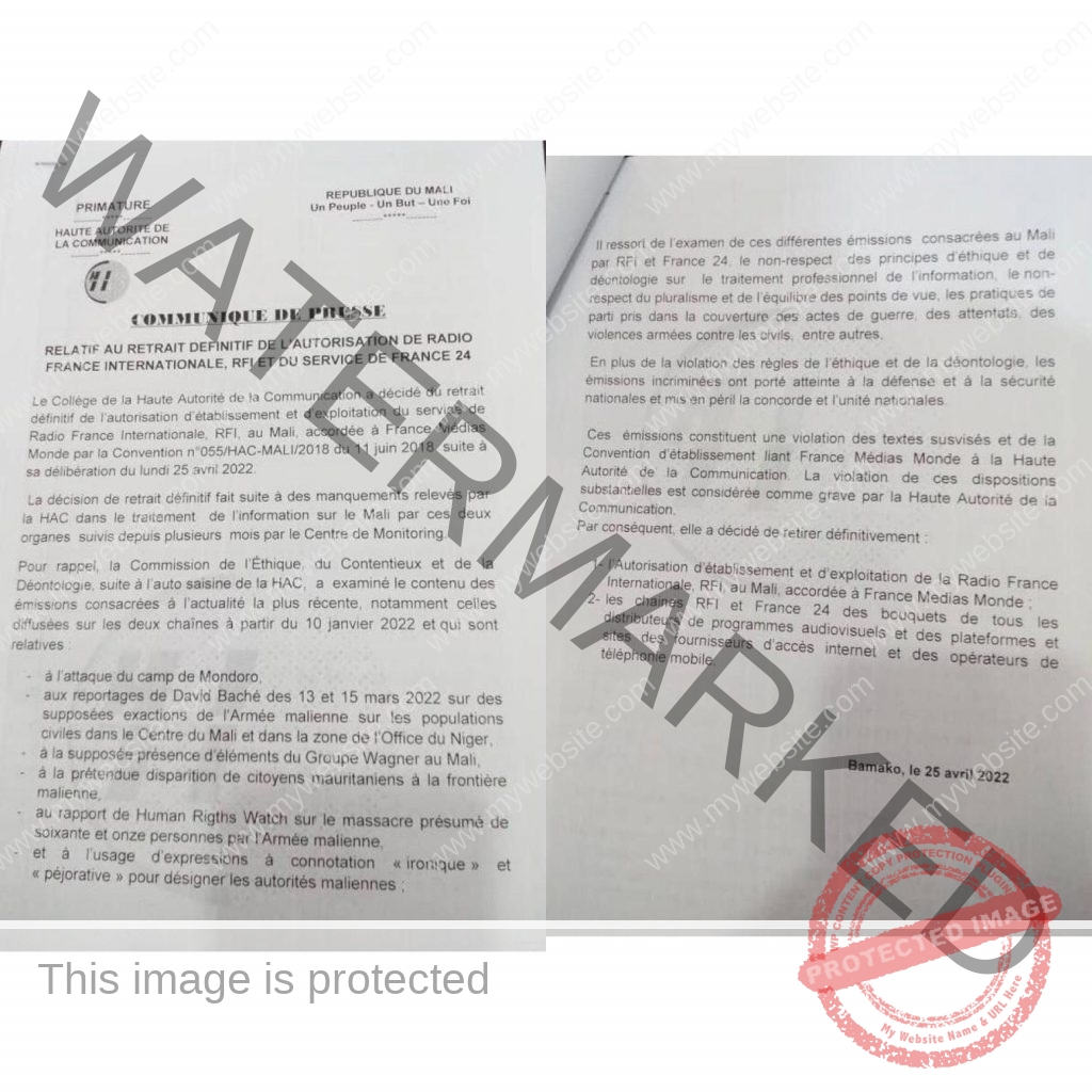 La Haute Autorité de la Communication justifie cette décision par la violation de ses dispositions substantielles considérées comme grave. Ce retrait définitif constituera donc une alerte pour d’autres organes étrangers de mesurer l’ampleur du contenu de leurs informations sur le Mali. Un pays isolé depuis les lourdes sanctions infligées par la Communauté Économique des États de l’Afrique de l’Ouest (CEDEAO) et l’Union Économique et Monétaire Ouest africaine (UEMOA).