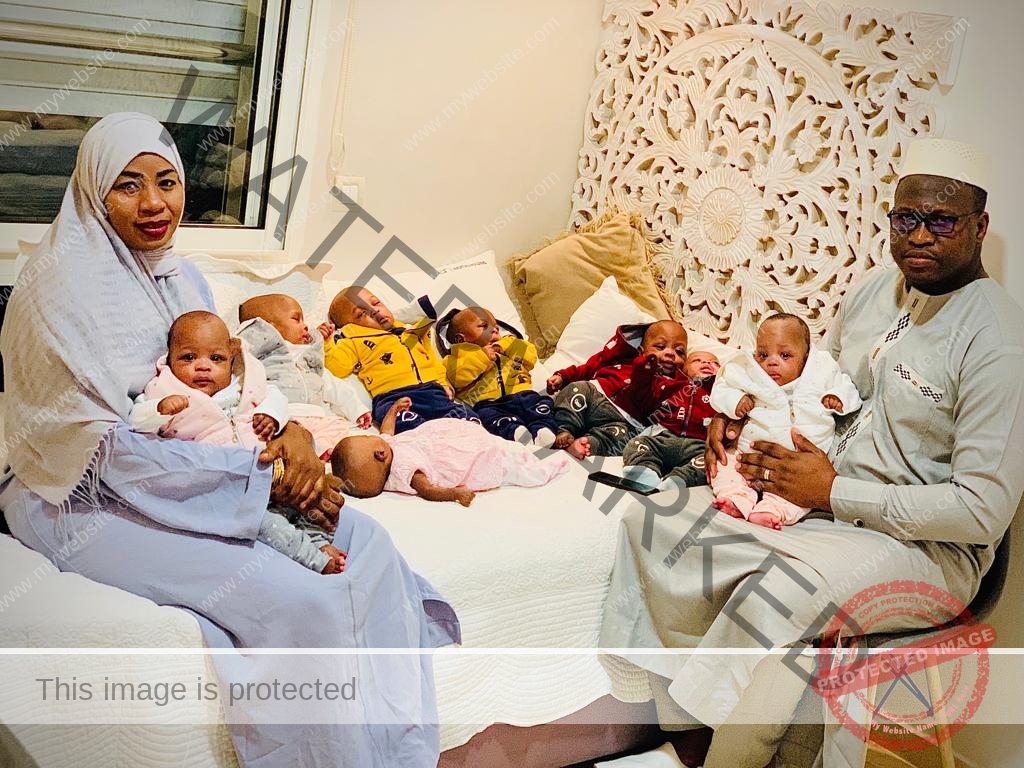 Monsieur AbdelKader Arby et Mme Arby Halima Cisse avec les neuf bébés
