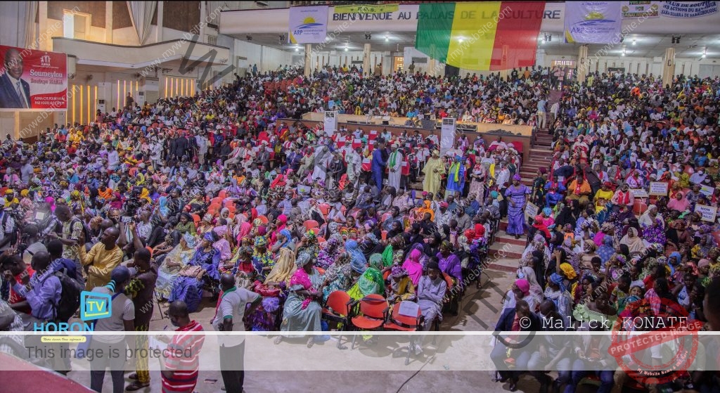 Ils étaient nombreux à remplir le palais de la Culture, l’une des plus grandes salles de Bamako. Hommes, femmes et jeunes de plusieurs bords politiques brandissant des messages et slogans. On peut lire : « Non à la prolongation de la transition ». « La plate-forme solidaire de ceux qui souffrent de l’insécurité, et de la cherté de la vie ». « Non aux assistes nationales ». « Libérez Soumeylou Boubeye Maiga ».